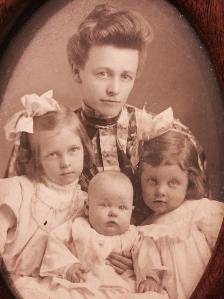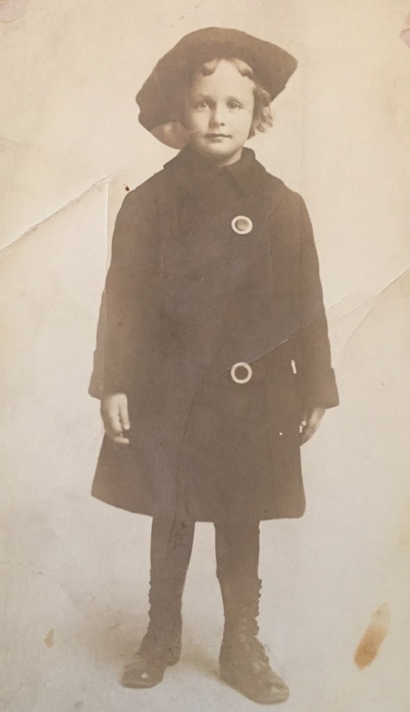 I’ve always loved this picture of Stella with her first three daughters, and the one below, taken when Nellie was two and looking very solemn. Nellie was six when my grandmother, Esther Jane Miller was born in 1914, and sadly, she died at age eight a week before Grandma turned two. Finding the sweet image of her in hat, coat, and boots pleases me so much–she is not forgotten.