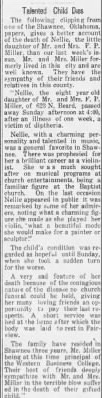 According to Nellie’s obituary in The Marshfield (Missouri ) Mail, she died of diphtheria on January 2, 1916. The article is effusive about Nell’s talents as a violinist who was “much sought after,” her charm, and her beauty.