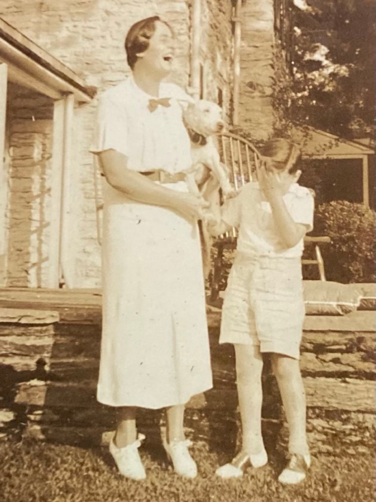 Another Women’s History Month has arrived and I can’t resist starting with this joyful photo of my Granny, Elsie (Mills) Oliver (1899-1993) with her nephew, Robert “Bobby” Hugh Oliver, Jr. (1930-1976). I can hear her laughing. This is an expression I remember well. And of course she’s holding Bobby’s dog, Snooky. Of course she is.